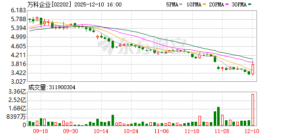值得关注的是,万科A在不久之前股价刚刚出现连续下跌,此次涨停之后,万科A报收5.25元/股。除了股价之外,12月10日,万科A境内债也普遍上涨。其中,“21万科06”“23万科01”涨幅超过40%。